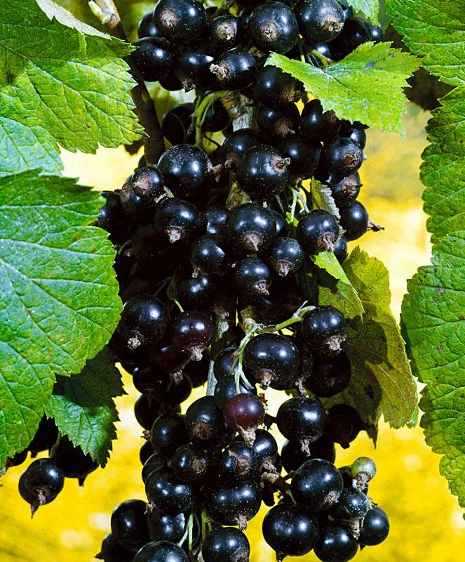 - Ягоды крупные (от 2,8 до 6 г), овальные, чёрные, блестящие, кожица плотная, эластичная. Вкус сладкий с небольшой кислинкой, с приятным ароматом.